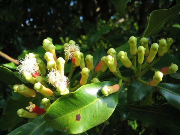 Clove tree trunk has smooth bark with grayish yellow aromatic foliage. It is a slow growing but a long-lived tree and can exceed 100 years of age easily.